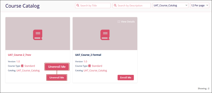- Users can self-enroll or unenroll for a course if the Allow Self Enroll option is configured while creating a course.