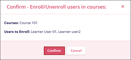 - Click on the Confirm button on the Confirm-Enroll/Unenroll users in courses