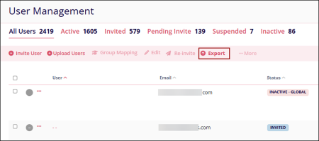 - On the User Management page, click the ‘Export’ button from the top menu