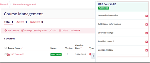 - Select a course from the Course Management page and click on the information (i)