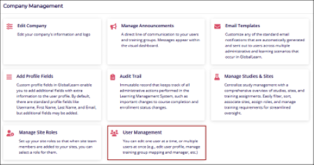 - Navigate to the Company Management section and select the User Management module.