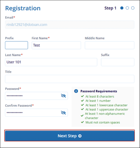 - Once all the details are entered, click on the Next Step button.