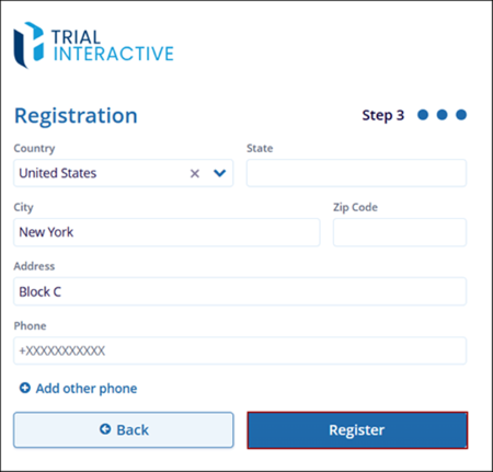 - One all the information is entered, click on the Register button.