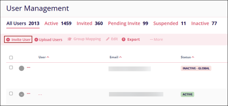 - On the User Management page, click on +Invite User