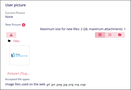 - In the User Picture section, upload an image in the specified formats as a user profile