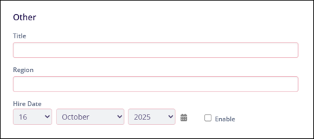 - Fill in the following miscellaneous information in the Other section.