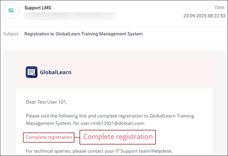 - The User receives a registration notification at the email address added in the Email