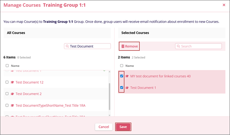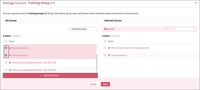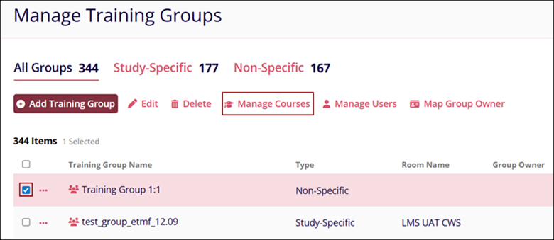 - On the Manage Courses screen, select the required courses by clicking on their checkbox.