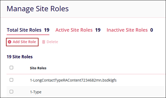 - Click on the +Add Site Role button on the Manage Site Roles screen.