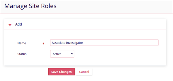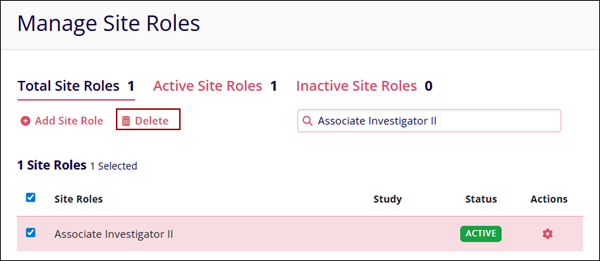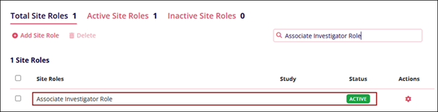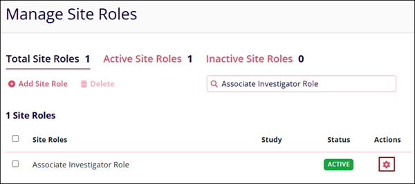 - Upon successful creation the site role is displayed on the Manage Site Roles main screen.