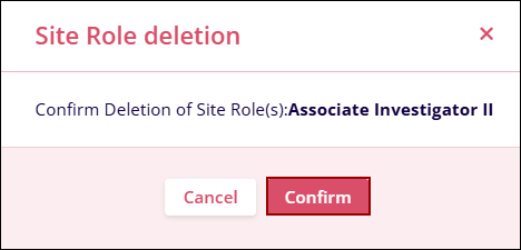 - Click on the Confirm button on the Site Role deletion confirmation popup.