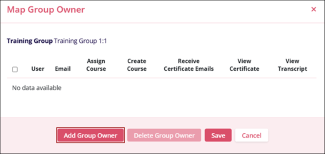 - On the Map Group Owner screen, click on the Add Group Owner button.