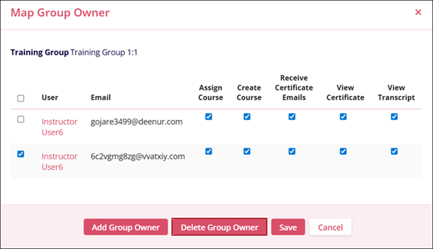 - Keep the Receive Certificate Emails checkbox checked to enable the group owner to receive certificate emails and vice versa.