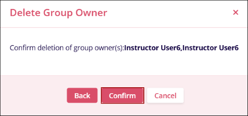 - To remove a user as group owner, select a user and click on the Delete Group Owner