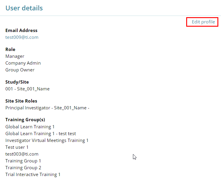 Figure: User details – Edit Profile