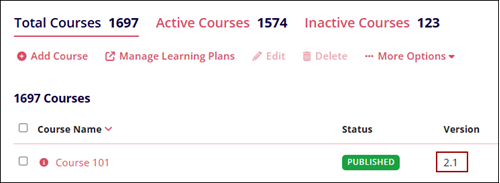 The modify version enables users to update the course’s minor version. To update the course version to a minor, follow the steps below:
