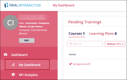 - From the left-hand navigation pane, expand the Dashboard option and select My
