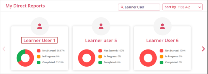 The My Direct Reports dashlet displays course statistics of those users (reportees) who are in direct association with or report to another user (Manager). The Manager users can retrieve transcripts or training logs of their direct reportees by applying certain criteria.