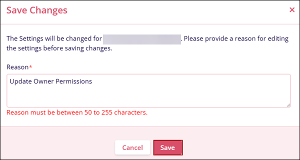 - On the Save Changes pop-up, mandatorily add a reason and click on the Save