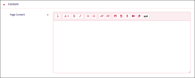 Content Name Description. Page Content Add a write-up in the designated area as the page content.