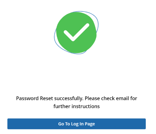 - The Password Reset screen displays the success message and prompts users to check