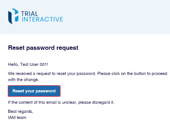 - Click on the Rest your Password button in the Rest Password Request email.