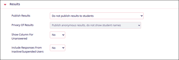 - Do not publish results to students