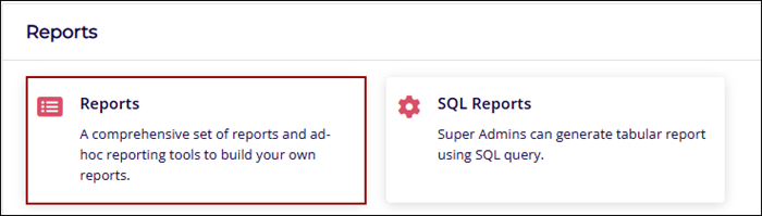 The Reports module enables users to generate and manage different reports. Company Admins can assign permissions (Individual, Group, or Custom Group) to control which users can access and view specific reports.