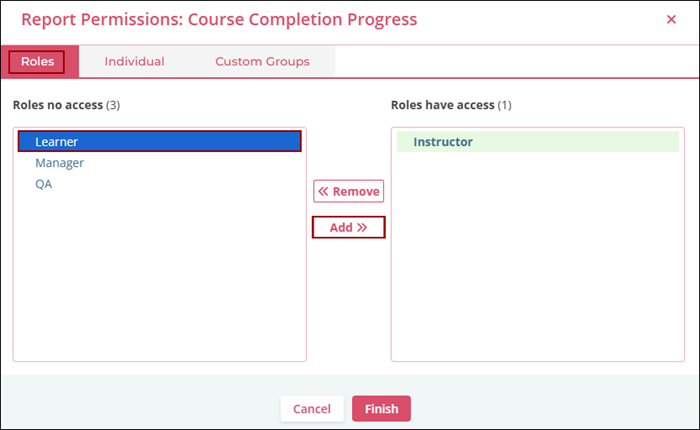 - To configure role-based permissions, click on the ‘Roles’ tab, select the user roles, and
