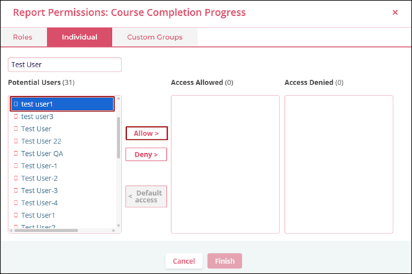 - To configure permissions for individual users, click on the ‘Individual’ tab, select the