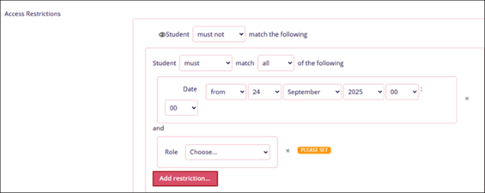 To add a restriction set, click on the Add restriction… button and select the required restriction criteria.