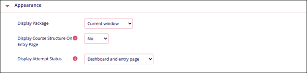 Display course structure on entry page Select Yes or No Display attempt status Select either of the following