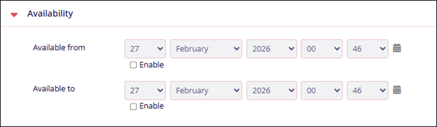 Availability Name Description. Available from Enable or disable the setting by clicking on the checkbox.