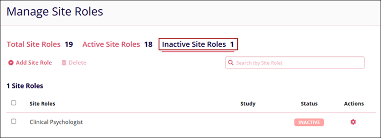 - Click on the Inactive Site Roles tab to view all the records with an