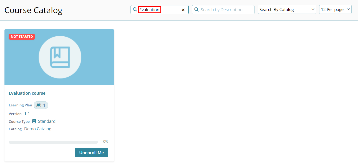 - To search for a course by its description, enter the course description in the Search By Description search box.