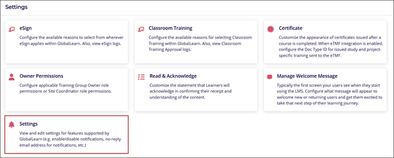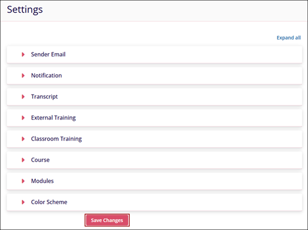 The Settings section enables Company Admins to configure key system preferences and learning options. From managing email senders and notifications to customizing training, courses, and the overall color scheme, this module provides centralized control to tailor the platform to organizational needs.