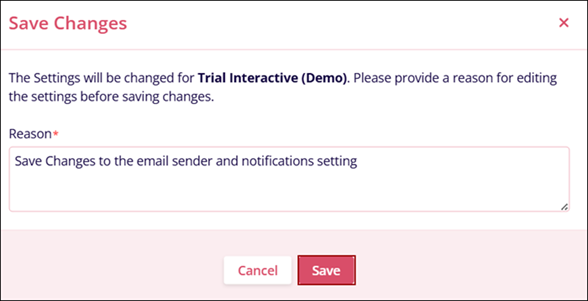 - Enter a reason adhering to the character requirements and click on the Save
