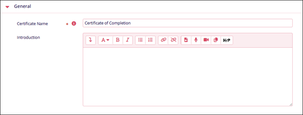 General Name Description Certificate Name* Enter a name for the certificate Introduction Enter a text describing the certificate