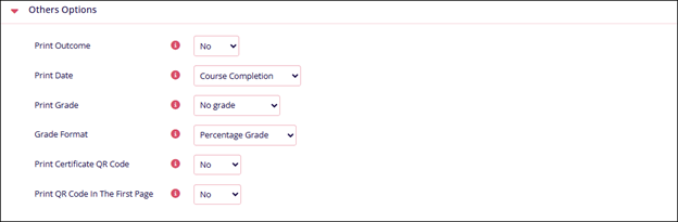 Print Certificate QR Code Select either Yes or No Print QR Code in the first page Select either Yes or No