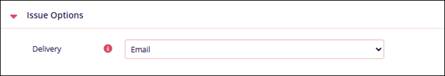 Issue Options Name Description Delivery Select any one of the delivery options