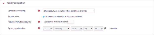 Note: Visible if Show Activity as complete when conditions are met is selected in Completion Tracking.Expect completed on