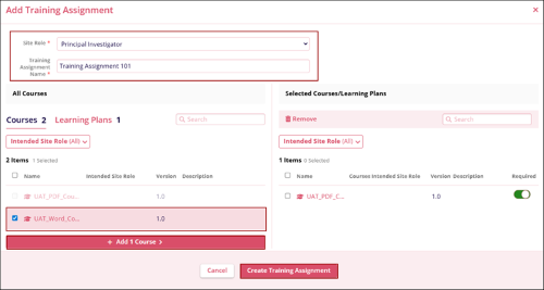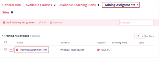 - When a Training assignment is created, users with that particular site role are auto-assigned the courses and learning plans in the assignment.