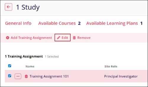 - Courses associated with the particular study are visible in the Available Courses section, and can be added to the assignment.