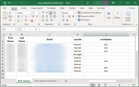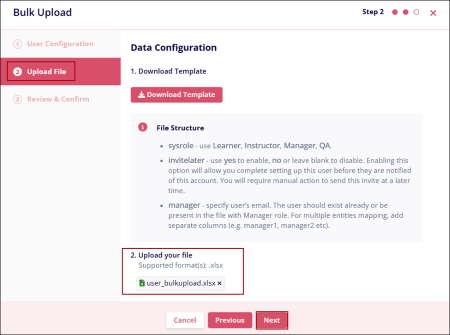 in Step 1: User Configuration.Note: Access the ‘Bulk Upload Instructions’ tab for each column requirements and definitions.