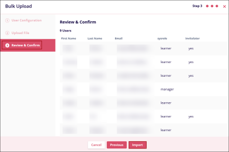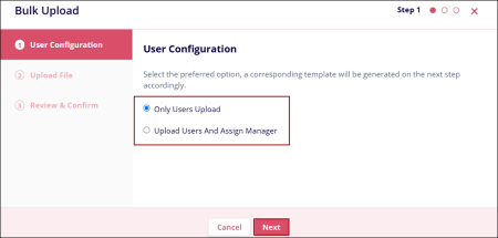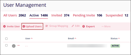 - Click on the ‘+ Upload Users’ button on the User Management page.