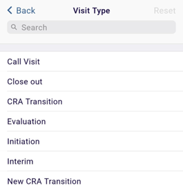 - Visit Type*: Click on the ‘>’ arrow and select a visit type from the available