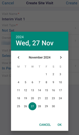 - Visit Planned Date*: Add a visit planned date from the date picker.