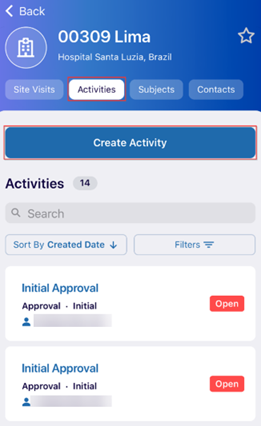 - Once the activity is successfully created, it is displayed on the main page of the Activities tab.