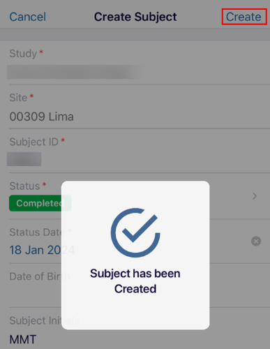 Subject ID*: Enter a value in the Subject ID field.