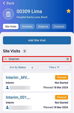 Users can customize the Site Visit screen by applying filters, sorting criteria, and searching for a specific site visit.